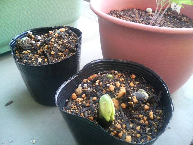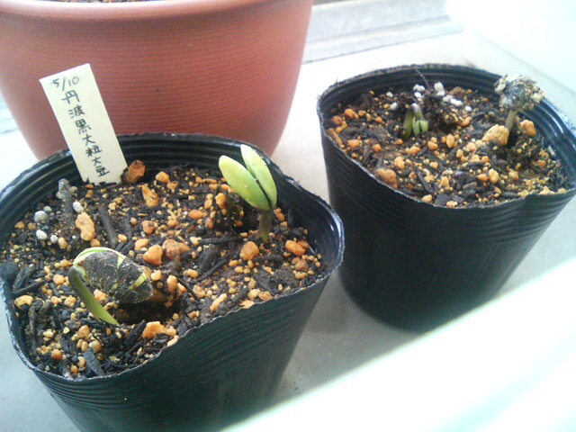 ポットに種蒔きした『丹波黒豆』の芽が...
