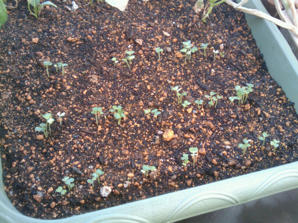 種を蒔いたチンゲン菜の芽が出揃って来ました。