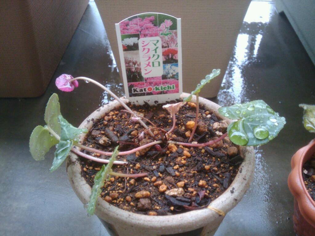 以前頂いたマイクロシクラメンも植え替えてあげました。大きめの鉢に植え替えたので、大きく育って欲しいです。