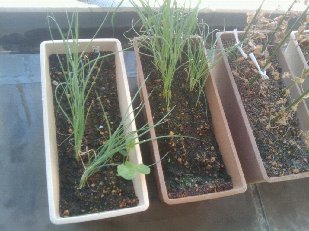あきらめかけていた万能ネギは元気になって、大きく育ちました。そろそろ食べられる頃ですね。