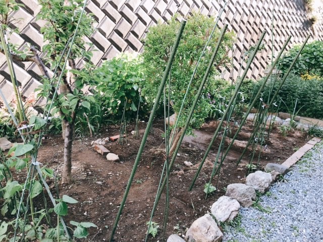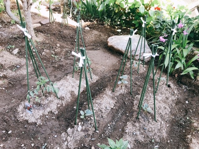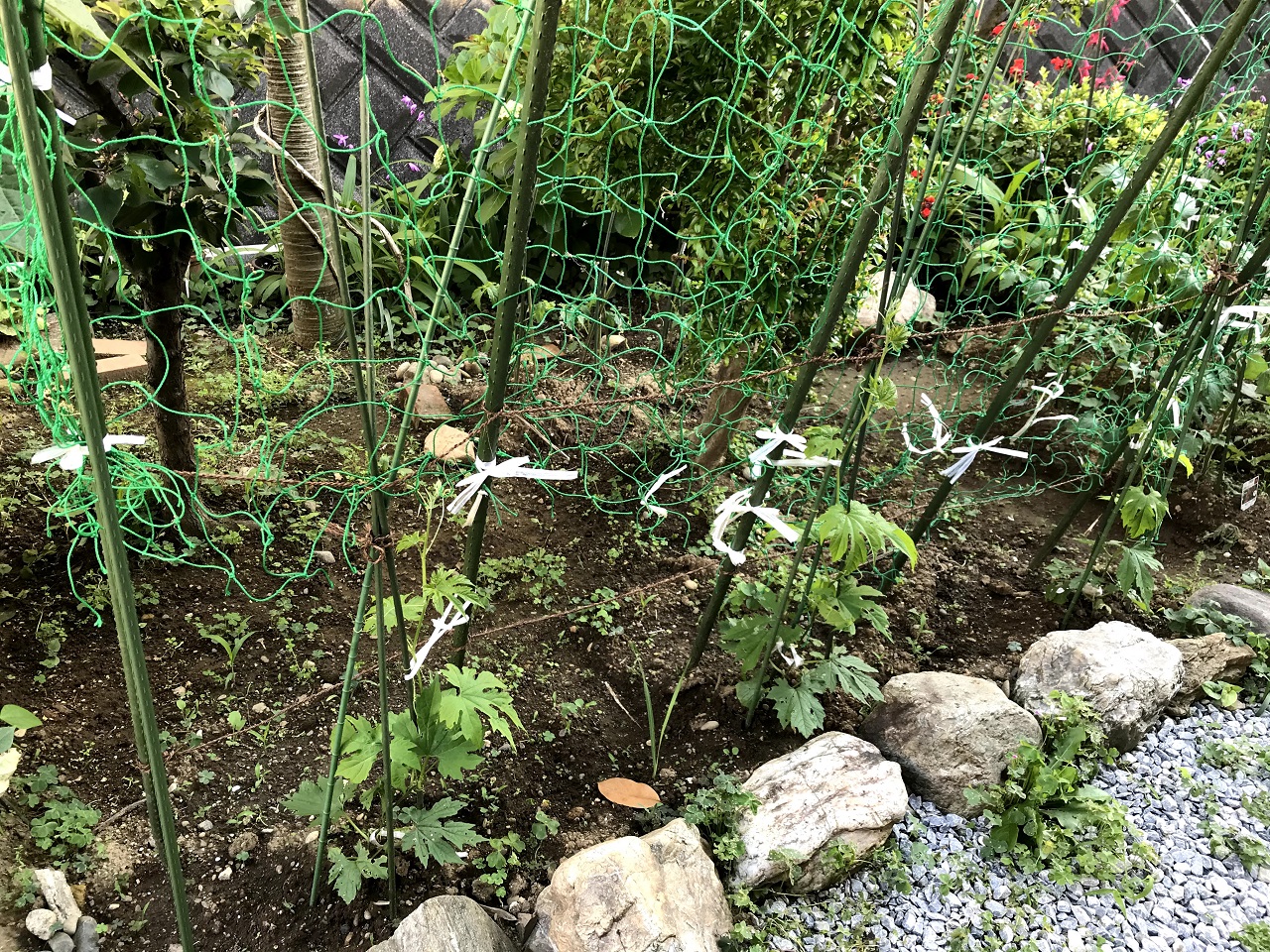 ゴーヤがだいぶ育ってきたので、ネットを張りました。