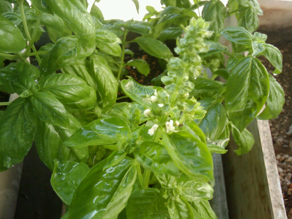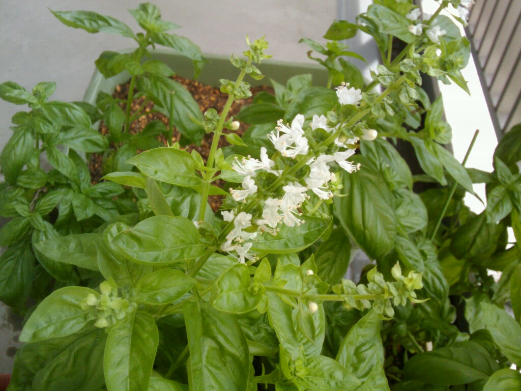 元気に育っているバジルたち。花が咲き始めてしまいました。週末、手入れをして、花を落としておかないといけないな。
