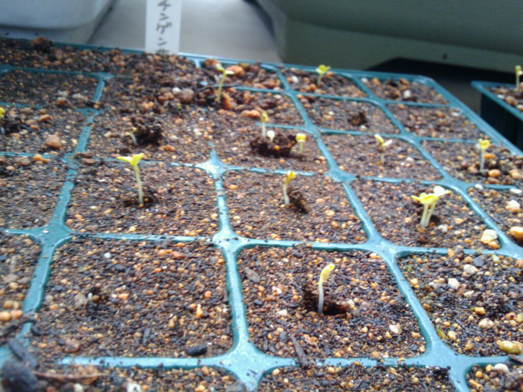 先週末に種を蒔いたチンゲン菜の芽が出てきました。