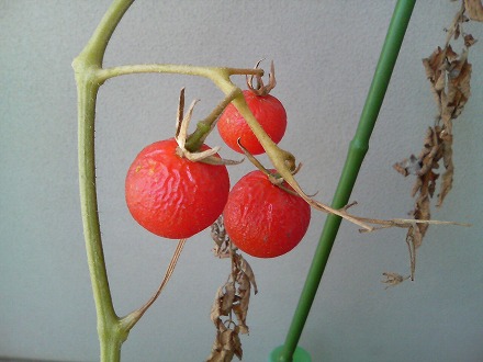 ミニキャロルの実がなってます。特になにも手入れはしていないんですが、実がつきました。実はしおれてきているので、たぶん食べられません。