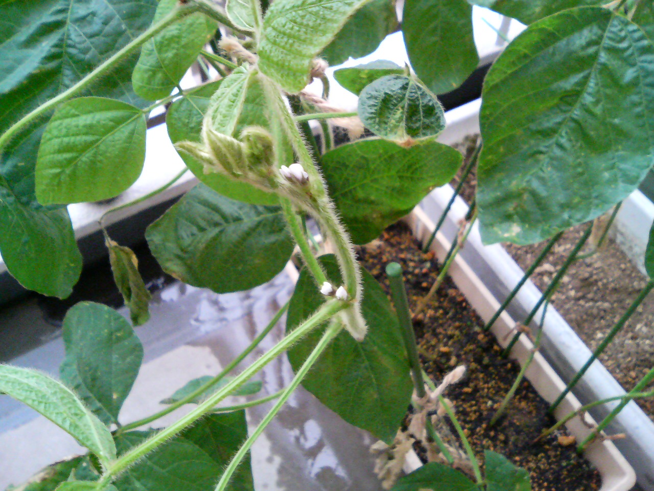 成長がイマイチで心配していた丹波黒豆大豆の花が...
