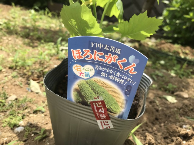 ホームズで買ってきたゴーヤの苗(3株)を植えました。